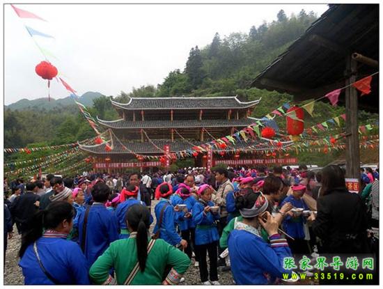 二、訪苗山:徒步經(jīng)峽谷上對(duì)歌臺(tái),登龍脊山百步石頭天梯,觀奇異風(fēng)水“三龍奪寶”,賞龍鱗樹(shù)“九龍迎賓”,攔門(mén)酒、攔門(mén)歌、攔門(mén)鼓,參觀苗寨人家,在山崖邊的“情人坡”樹(shù)蔭下納涼,觀數(shù)人合抱的“九世古樹(shù)”、草帽大的“靈芝”,參與互動(dòng)的民俗表演。苗家中餐(農(nóng)家飯,迎客酒)后游神龍峽,走在鄉(xiāng)間的小路上,小溪、田埂,別有一番趣味,乘船返長(zhǎng)潭崗。