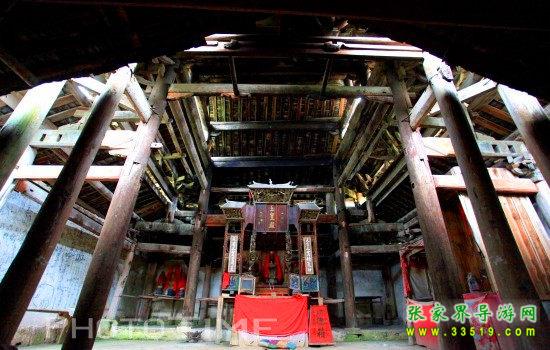 土司祖師殿位于老司城太平南麓,始建于后晉天福二年(公元937年),重建于明代。正殿柱大數(shù)圍,上架木枋處無斧鑿痕跡,相傳為魯班顯靈所建。此殿占地580多平方米正殿面闊五間,進(jìn)深四間重檐歇山頂,長17.5米,寬13米,高20米,全木材結(jié)構(gòu),永34根大柱支撐屋頂。柱礎(chǔ)用雙曡圓鼓式,殿脊殿檐是圖案精致的陶磚陶瓦。殿中金柱前,砌有神龕一座,上供“祖師”神象。殿宇斗拱雄偉古樸,梁架結(jié)構(gòu)頗為特殊,是土家族地區(qū)頗具民族特色的建筑,為湖南省重點文物保護(hù)單位。