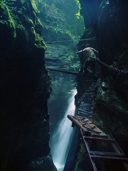 坐龍峽,經(jīng)由300萬(wàn)年大自然的風(fēng)吹、水蝕而成,一直隱逸于湘西茫茫十萬(wàn)群山之中。它長(zhǎng)約3500米,最大高差達(dá)300余米;寬處不足丈余,窄處僅容一人通過(guò);谷內(nèi)絕壁縱疊,溪瀑橫懸,崖樹斜逸,異草遍被。