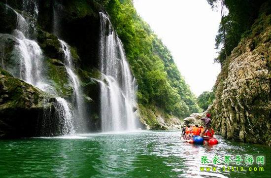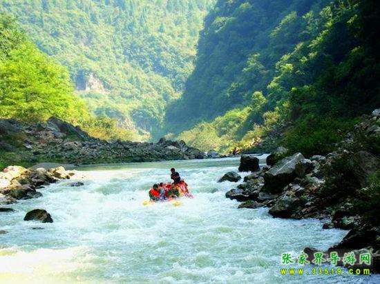 天下第一漂,起點哈妮宮距王村約40公里,行車1小時,終點牛路河距王村30分鐘的車程,漂流水路長17公里,漂流兩個半小時。從哈妮宮放舟而下,一路是古老的河道,絕壁百里,怪石嶙峋,灘奇水異,兩岸蒼翠的林木,云霧繚繞,飛瀑流泉與溶巖峰林交相輝映。拐一百五十五個彎,在一百三十三個灘潭中穿梭而行,迂回流連,馳魂奔魄,心曠神怡。