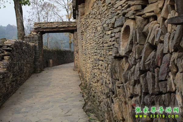 苗王城是西南地區(qū)苗族留存至今唯一一座保存得較好的集政治、經(jīng)濟(jì)、文化、軍事和建筑為一體的古苗寨。它占地面積10 平方公里,依據(jù)山形水勢,前后筑有六個古兵寨。古寨內(nèi)有11 條巷道,巷道內(nèi)有 11 道寨門,巷道以石墻作為屏障并跟各家的院墻連成一體, 而且有專門迷惑敵人的“直角巷道”,