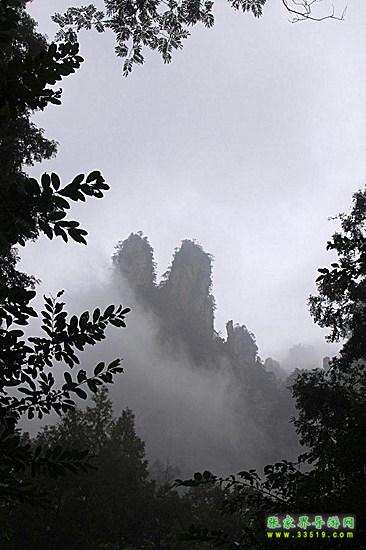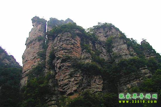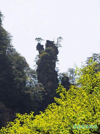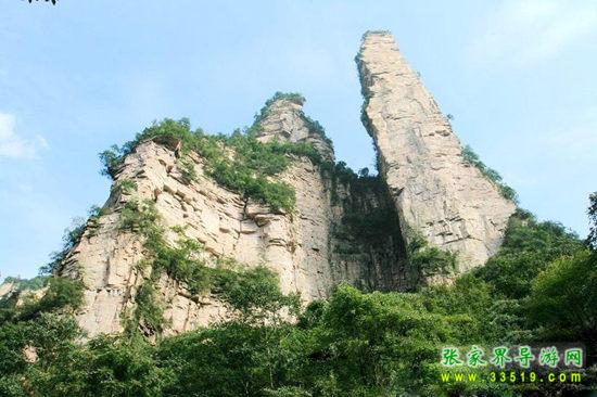 山谷中并排而立的三支山峰,有模有樣,有人叫他們“師徒取經(jīng)”,說那是唐僧、孫悟空、沙和尚三人的“合影”??催^《西游記》的朋友,可能對這片風(fēng)景有似曾相識的感覺,這兒曾是中央電視臺拍攝《西游記》的外景地。有些客人經(jīng)常問,重要人物豬八戒先生怎么沒有趕上這個“合影”呢?他忙里偷閑,在后面背媳婦去了(我們剛才不是看過“豬八戒背媳婦”那個景點嗎?)不小心誤了時辰。如此看來,愛情和事業(yè)有時難免會有點矛盾。