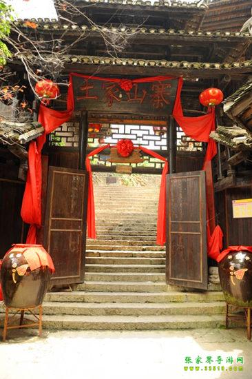 張家界土司城,南倚天門(mén),北靠澧水,永定第末代土司覃純一被朝廷封為世襲千總后建造,距今近三百年歷史,是西南地區(qū)唯一保存完好的古城。土司城占地120多畝,集吊腳樓群,走馬轉(zhuǎn)角樓群為一體,是土家族古代文明的發(fā)祥地和凝聚地。城內(nèi)遺存著大量的珍貴文物,素有“南方紫禁城”之稱。2002年建筑奇觀“九重天吊腳樓”和“千人茅古斯”一并載入世界吉尼斯紀(jì)錄。2003年被列入了國(guó)家AAAA級(jí)景區(qū)、張家界旅游精品線路。是來(lái)張家界考察的國(guó)家領(lǐng)導(dǎo)人和藝術(shù)界人士的必到之處。很多專家學(xué)者參觀土司城后紛紛感慨“不到土司城、不懂土家人”。