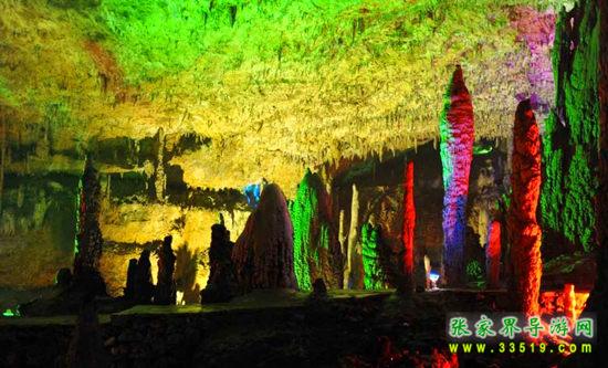 九天洞位于湖南張家界市桑植縣城17公里的利福塔鄉(xiāng),距市區(qū)70公里,距武陵源62公里,因洞內(nèi)有九個自然天窗九天洞而得名,總面積250公頃,是中國目前發(fā)現(xiàn)的溶洞之最,比號稱世界第一的利川溶洞大三倍。九天洞內(nèi)空氣清新,冬暖夏凉。整座洞穴分上、中、下三層,有五層不同高度的螺旋式觀景臺,最下層低于地表面400多米。經(jīng)初步探明洞內(nèi)有40個大廳、3條落差懸殊的陰河、12條瀑布、5座自生橋、10余座洞中山,此外,還有不可勝數(shù)的五光十色的鐘乳石群。在眾多迷人的景觀中尤以九星山、玉宮、水晶宮、九天玄女宮、壽星宮五大奇觀最為著名。