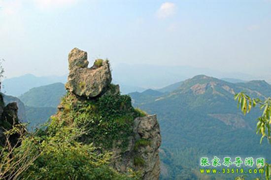 兩支山峰圍成一道天然小石門(mén),大有“一夫當(dāng)關(guān),萬(wàn)夫莫開(kāi)”之勢(shì),人稱(chēng)南天門(mén),據(jù)說(shuō)過(guò)了這道門(mén)就是天堂。不過(guò),說(shuō)來(lái)也奇怪,穿過(guò)山門(mén)之后,山勢(shì)為之一變,奇峰怪石,蒼松翠柏,美不勝收,不是天堂,勝似天堂。前面這支位于南天門(mén)身邊高200多米的孤立石峰,叫南天一柱。它與一般的山峰不大相同,一般的山峰是下面粗、上面細(xì),而它是上面粗、下面細(xì)。山風(fēng)吹來(lái),這根石柱好像搖搖欲墜,驚心動(dòng)魄之余,仿佛耳邊還能隱隱約約聽(tīng)到億萬(wàn)年前地殼運(yùn)動(dòng)時(shí)發(fā)出的轟隆隆的巨響——為了“安全”我們還是繼續(xù)往前走吧。