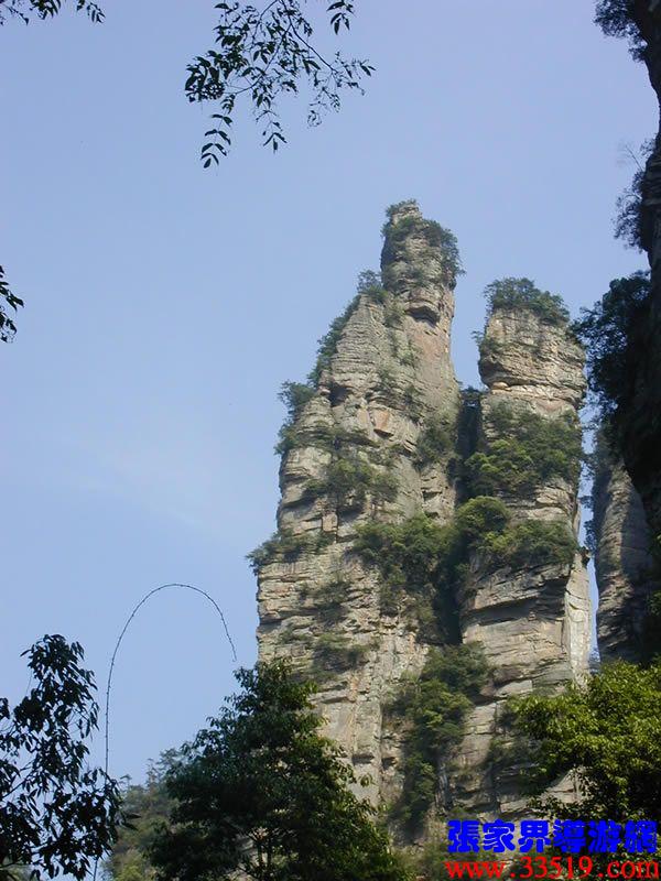 (花果山、水簾洞)孫悟空的花果山水簾洞到了。并不是張家界人過(guò)于牽強(qiáng),胡亂把西游記的事兒往這兒湊,實(shí)在是巧合,《西游記》劇組的導(dǎo)游楊潔及唐僧、豬八戒、孫猴子、沙和尚等飾演者,一見到這地方就十分肯定地說(shuō):外景地選遍全國(guó),只有張家界才真正是《西游記》筆下的神仙妖魔世界。大家順著我的指向往前看,左前方是帶著僧帽,披著袈裟,嘴中念念有詞的唐僧,緊跟在他后面的那座黑乎乎的石峰當(dāng)然就是沙和尚了;神通廣大的孫猴子半蹲在唐僧后側(cè)手搭涼篷,正在觀察敵情呢;豬八戒哪去了?不用說(shuō),不是貪吃貪睡,就是偷偷找小女子搭訕去了,花心去了。