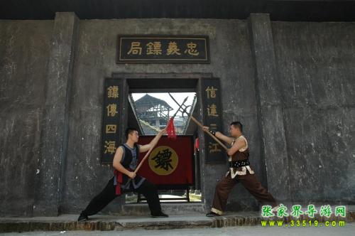 忠義鏢局,它始建于清乾隆四十二年(1777),位于洪江龍船沖,這里會(huì)館、錢莊、豪宅林立,堪稱洪江的曼哈頓。與我們?cè)?a class="insidelink" href="http://m.ahdfgjg.com/hongjiang/" target="_blank" title="洪江古商城">古商城看到的窨子屋不同,這是一座典型的北方四合院,前庭后院,布局嚴(yán)謹(jǐn),軸線明確,左右對(duì)稱,主次分明。前院是鏢師練功習(xí)武之地,墻壁上書有“忠”、“孝”、“禮”、“義”四字和“十八羅漢練功圖”;后院為鏢師起居和洽談生意之所,內(nèi)供奉關(guān)武大帝。忠義鏢局主要為豪商巨賈押運(yùn)銀票、貨物,看家護(hù)院,坐夜守店,也開館收徒,傳授武藝。忠義鏢局的掌門人劉大鵬,湖南長(zhǎng)沙人,幼時(shí)即入嵩山少林寺習(xí)武,不僅精通十八般武藝,而且頭腦精明,他把鏢局開在這洪江最繁華的金融一條街,足見他的經(jīng)商意識(shí)和人面廣了。現(xiàn)在忠義鏢局現(xiàn)場(chǎng)表演古代押鏢、行鏢全過程,是人們了解中國(guó)古代鏢行歷史文化的活性博物館。有興趣的朋友可以去洪江古商城親自感受一下當(dāng)時(shí)押鏢的情景吧。