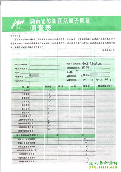 2011年10月22日陳先生一行7人旅游質(zhì)量反饋