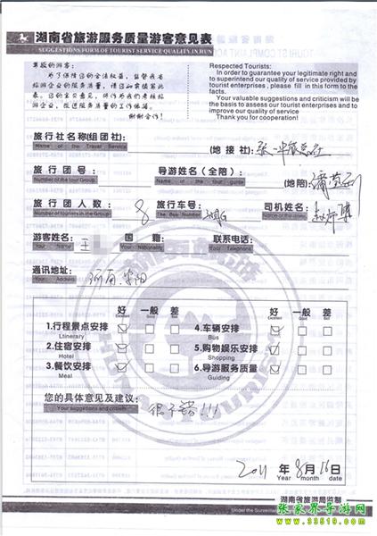 2011年8月16日王小姐旅游質(zhì)量反饋:很不錯!